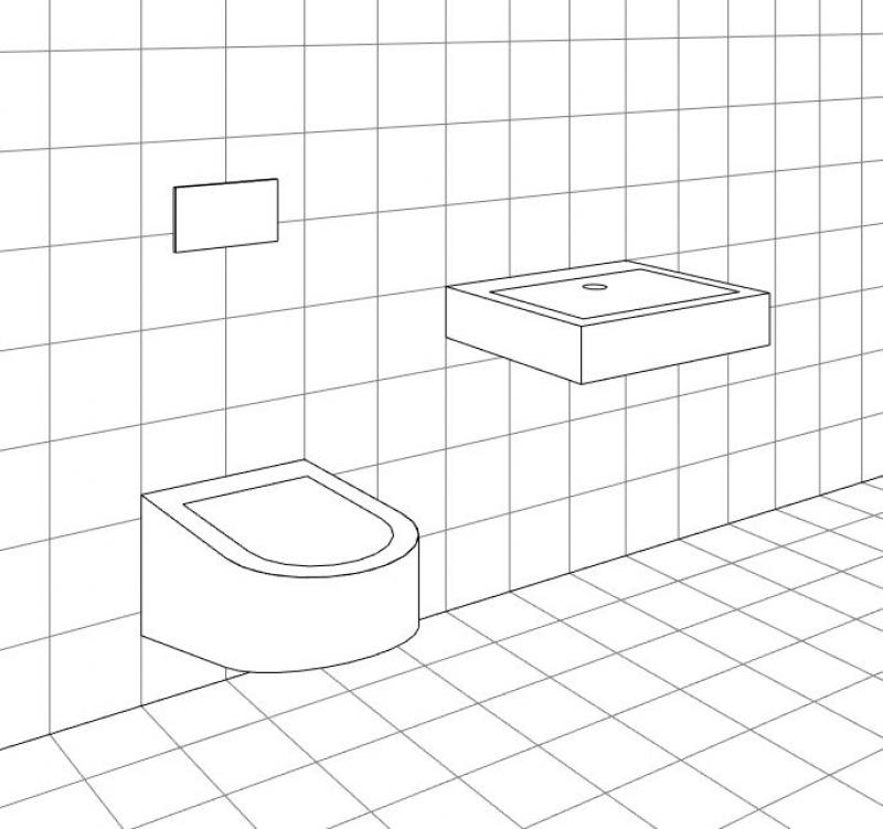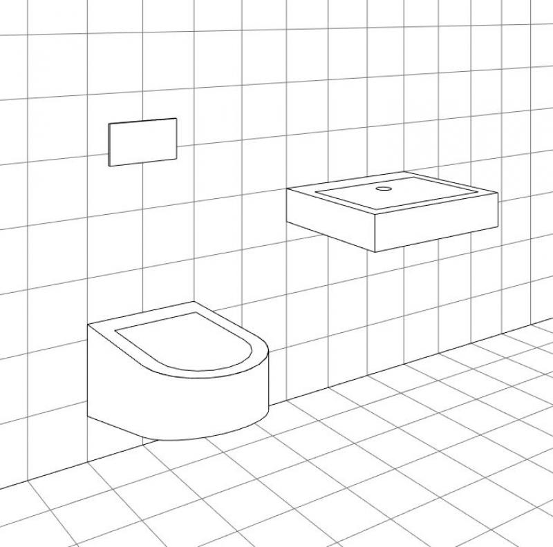 In dieser Phase müssen noch keine Sanitärgegenstände erstellt werden. Für eine erste Einschätzung des Platzbedarfs von Sanitärobjekten können 2D-Elemente bestehend aus einfachen 2D-Linien platziert werden.