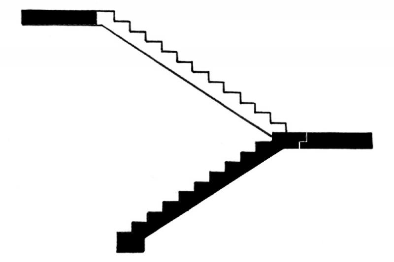 - Der obere Teil des Treppenlaufs endet in der Regel mit einem unterseitigen horizontalen Abschluss. Der Abstand zwischen Knick und Fuge kann mit ca. 10 cm angenommen werden.