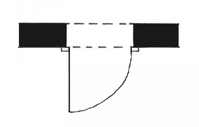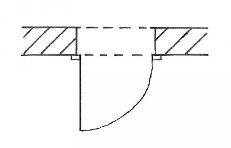 Hier wird die lichte Durchgangsbreite und Höhe, die Feuerwiderstandsklasse und die Türnummer beschriftet. Plandarstellung:
