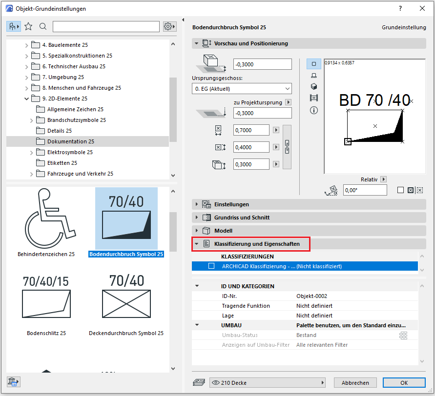 Die Familie wird dabei optimalerweise so hergerichtet, dass die erforderlichen Informationen aus den Parametern und Merkmalen der Rohbau-Bestandteile ausgelesen werden können: