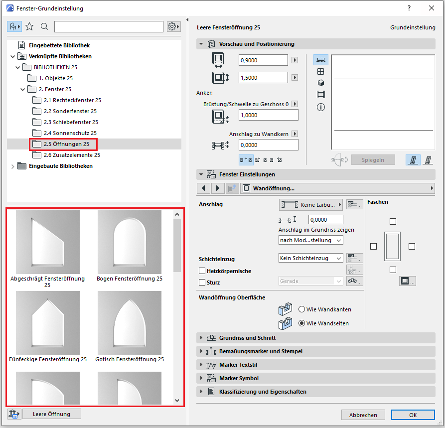 Die mit dem Fenster-Werkzeug erstellten Durchbrüche und Leeren Öffnungen können auch zentral über die Modelldarstellung gesteuert werden.