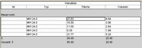 Bauteillisten Allgemein